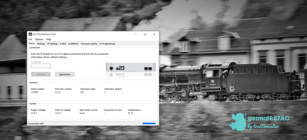 Z21 maintenance desktop app allows you to change the settings on your Z21 digital control center.