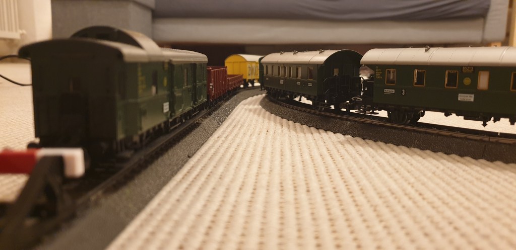 Before most of us built our permanent or modular layout, I can safely say that we started with our first digital or analog train set on the floor. The first oval track and a few pieces of rolling stock. Some of us did not move above Ground Zero; hence, the term “carpet (or parquet or floor) railroading” applies to who run their trains on the ground. I think it is not a bad idea at all. In fact, you are not “constrained” by space. I have seen videos of tracks occupying every available floor space; there are lots of tracks and turnouts. The time taken to install and dismantle those tracks must have taken at least a few hours.