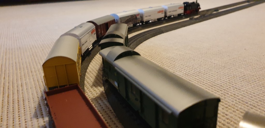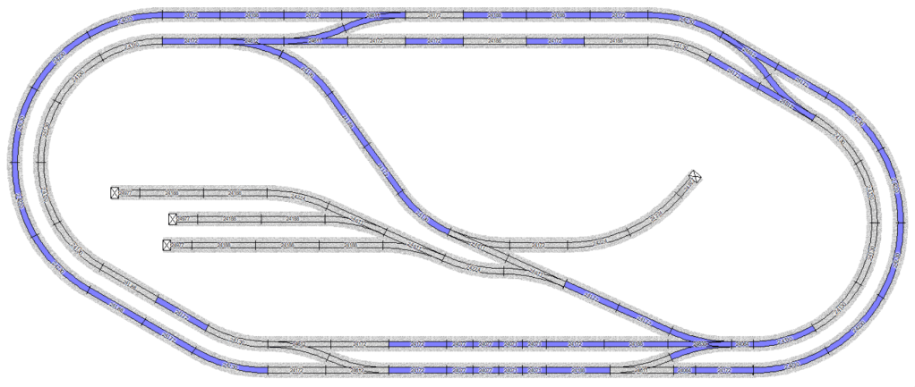 It was basically the oval track from the starter set but instead of a symmetrical oval, I gave it a twist. The sidings were useful as they allowed me to “park” my other locomotive and trains, while one was running on a single track.
