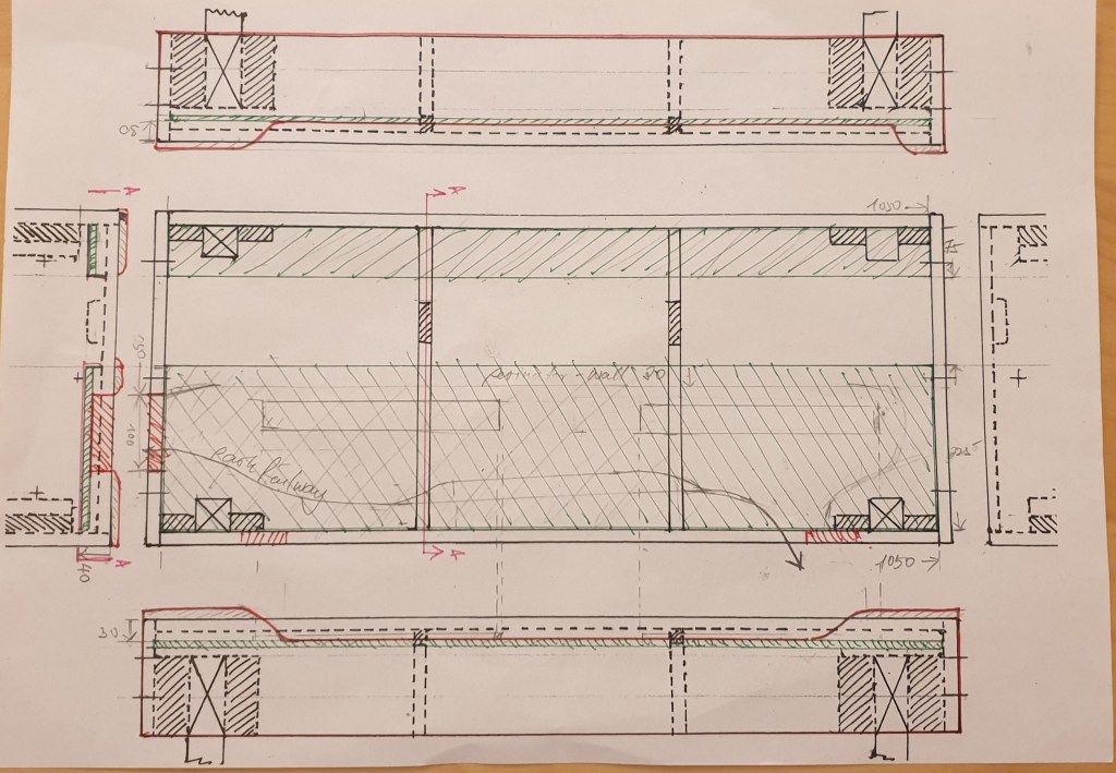 If I want to build a module that tells a story – in this case Loewenherz Railway Park Bad Niedrigsrode – it needs to have depth. This means not having a flat surface. This also means added challenges such as hinderances such as position of the legs, main cabling, end module connectors, etc. It took me 2 weeks to figure out how to turn the above visualization into reality, and making adjustments to ensure that the module will work and can handle rough handling and transport.