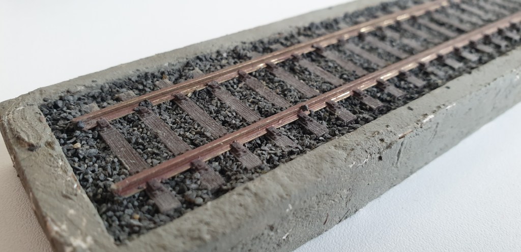 In addition, I did not want to use just wooden sleepers. So I bought a piece of Roco flex track with concrete sleepers. Overall, the 3 plinths look great and I am happy with the results.