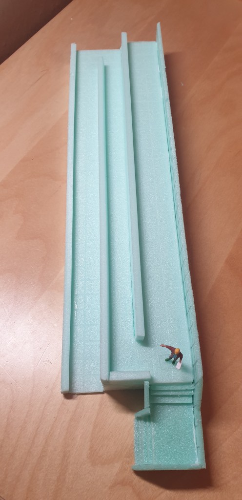 The 36cm long and 9cm wide platform was constructed entirely 3mm and 5mm styrofoam.