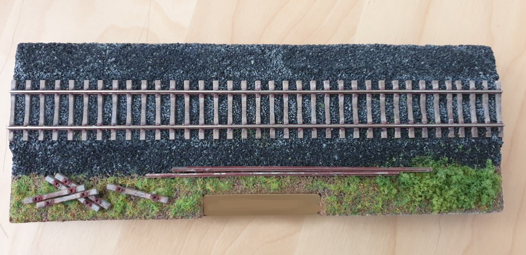 The unique challenge was to make a special presentation plinth 250mm x 100mm for him, something that will commemorate his 17 years at Deutsche Bahn. He started his career at DB Netz Fahrwegdienst, which is responsible for the track infrastructure and his last as at DB Fahrzeuginstandhaltung. His last station is presented by the BR 218 497-6 DB FZI Cottbus model. His first is represented by the presentation plinth which consists of a weathered rail with concrete sleepers and some used rails and concrete sleepers on the side.