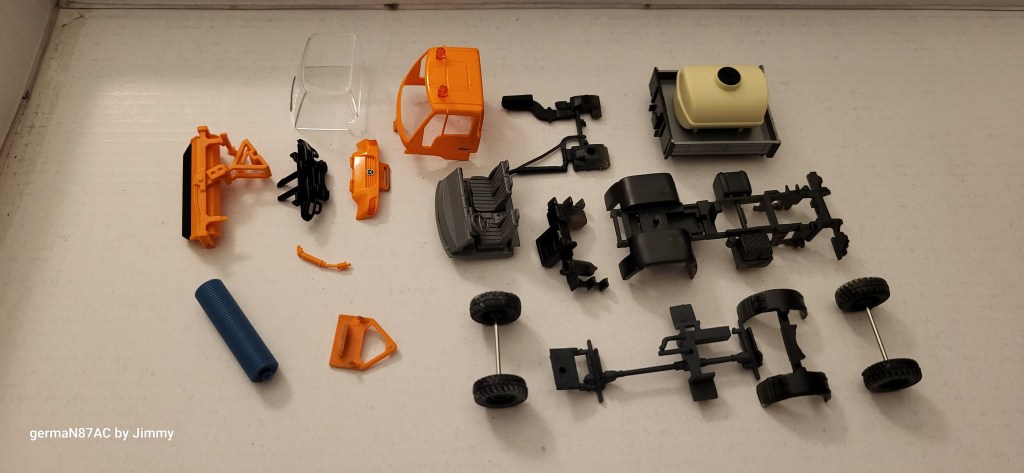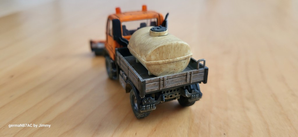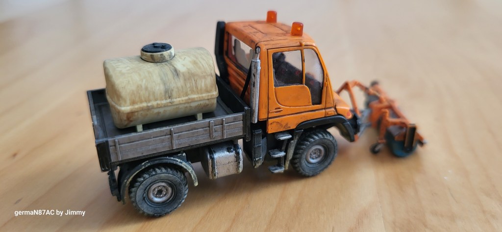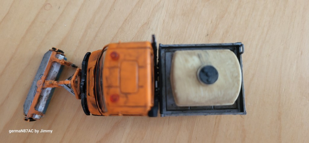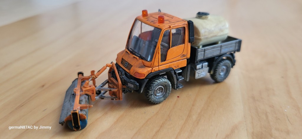 I needed a street sweeper vehicle for my Loewenherz park and found a nice Wiking Unimog street sweeper. Unfortunately, I could not find the same article number as the one showed up on the Internet has a different cab design (Wiking Unimog U20 (Art. No. 064639))