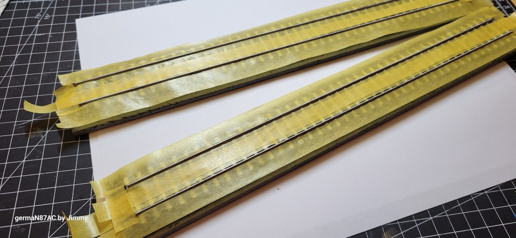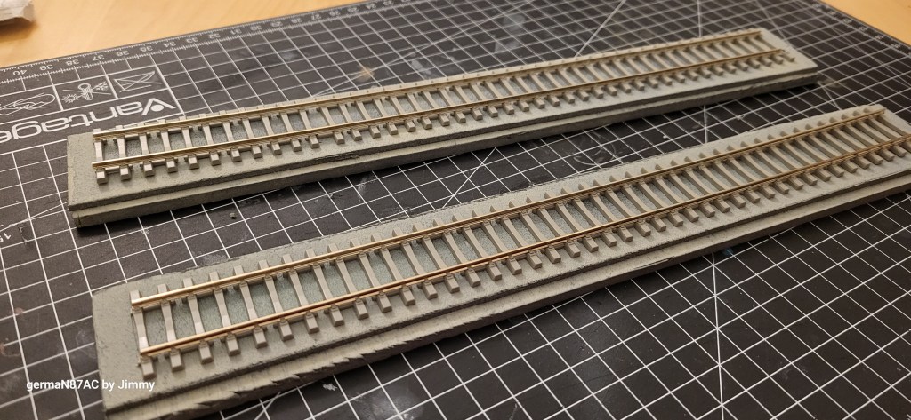 I finished off with a coat of Bergswerk ultra matte varnish and let dry for 12 hours. The tracks are ready for inspection and installation on the existing spaces.