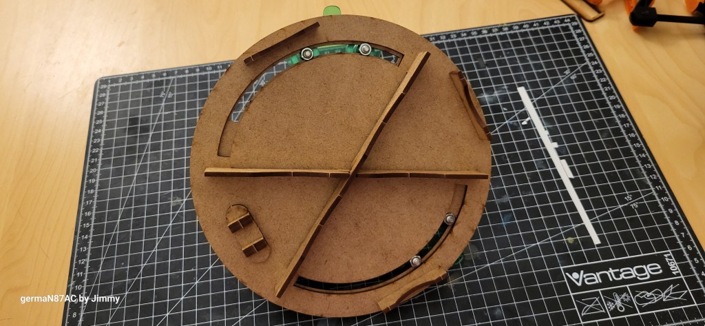 GSW mitre cutter consists of self-assembled laser cut components made from thin MDF boards. The handle for the blade is made from 4 pieces glued together. The side base supporting the handle is made from 2 pieces on each side; thus, ensuring a sturdy handling.