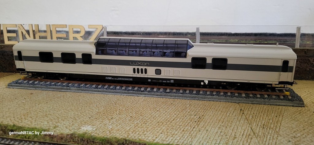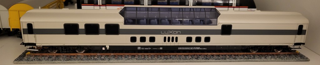Rivarossi HR4323 is not the first and only manufacturer to offer LUXON dome car. Others include Arnold (N) HN4377, Minitrix (N) 18429 and Tillig (TT) 16554.