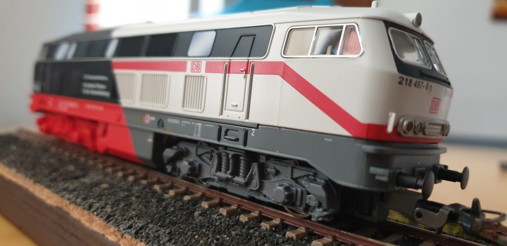 In Autumn 2021, Märklin and Piko announced the result of their joint project to produce Class (Baureihe) 218 497-6 DB Fahrzeuginstandhaltung Cottbus in special livery. On one half of the diesel locomotive carries the Piko logo on a black blackground to symbolise the steam era and on the other half carries the Märklin logo on a white background to symbolise the modern Intercity livery. This special livery signifies the connection of DB Fahrzeuginstandhaltung (DB Heavy Mainteinance) legacy as a repair shop for steam locomotives as well as its future as the latest ICE maintenance depot.