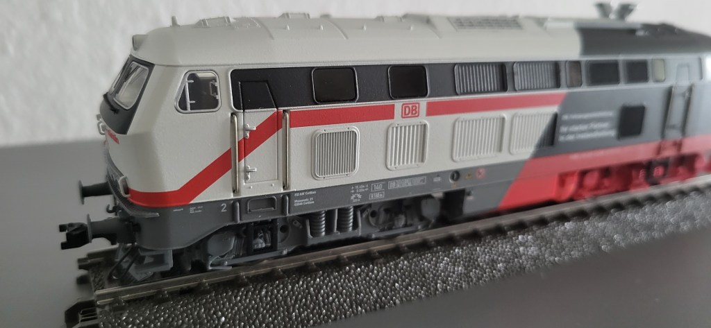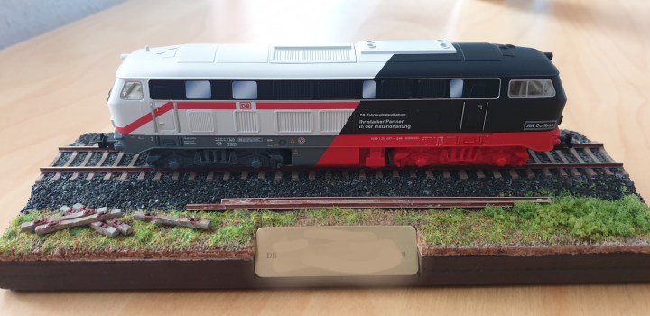 I was asked to make a farewell present for a colleague started his career as an apprentice at DB Fahrzeuginstandhaltung and left as a department head. I thought that the BR 218 FZI Cottbus was a befitting gift for him and a reminder of his years at FZI. He is also a HO-scale modeller; thus, PIko model was an obvious choice.