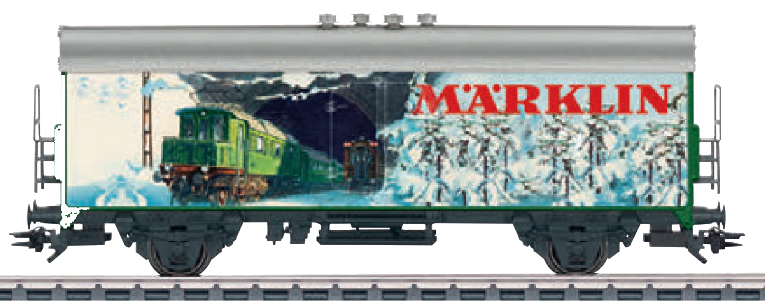 | 1937* | 45908* | ![]() | Through the History of Märklin Catalog Title Pages 1937 The painting that decorates this car shows a beautiful winter motif at a tunnel entrance or exit on an electrified two-track main line. A green class E04 loco hauling an express train of the same color is exiting the tunnel just as another express train has disappeared into the tunnel, and the viewer can just make out the end-of-train discs at the top of the last car. |