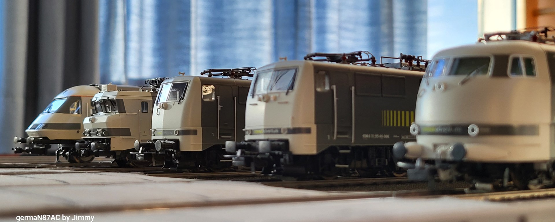 Between Peter Fuchs and myself, we own the largest collection of RailAdventure H0-scale (1:87) alternating current (AC) models in Germany and probably anywhere in Europe. All the commercial ready-to-run models from Piko Baureihe 103 to the latest Rivarossi Luxon panoramic dome car. We also have custom-made Sfps barrier wagons in H0-scale as well as various 3D-printed Loco Buggies and special coupling adapters.